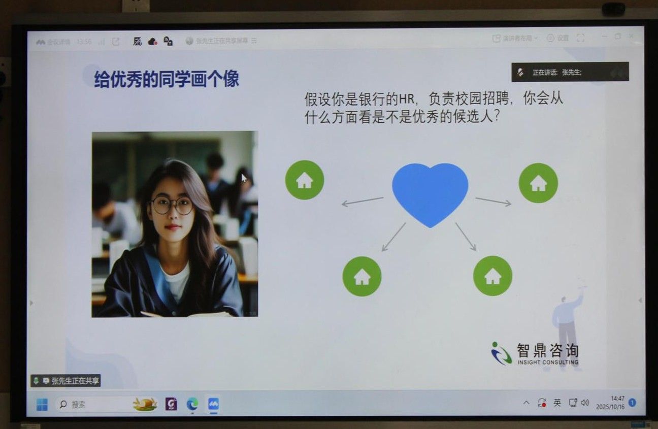 2025年10月16日下午14:30,现代教学技术教育部重点实验室就业指导系列讲座第六讲在教学一楼119教室及腾讯会议线上线下同步成功举行。本次讲座主题为:如何对卓越人才进行画像——智鼎方法论助力研究生成长和职业发展,北京智鼎管理咨询有限公司高级副总裁、资深咨询顾问张登印先生担任主讲人,实验室衣新发教授为主持人,实验室师生参与。